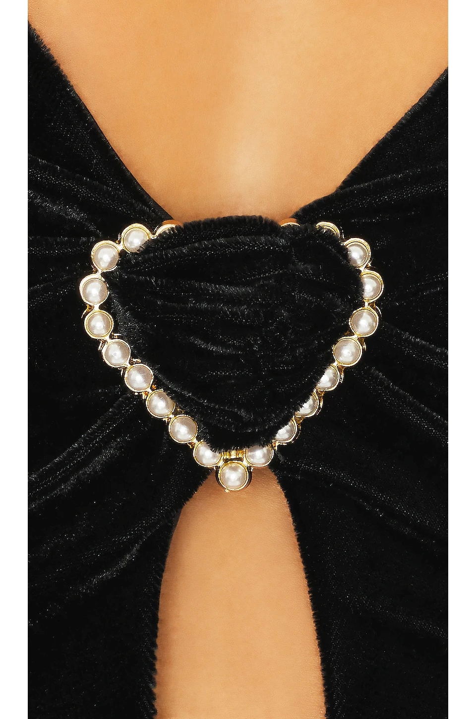 - Heart shaped pearl accent at bust with cut-out design