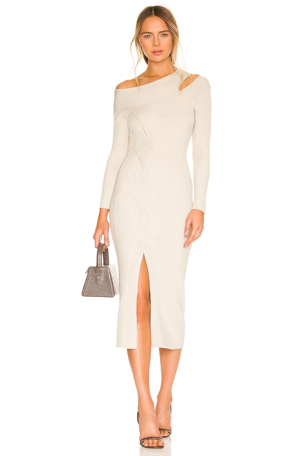 - Asymmetric neckline with shoulder cut-out